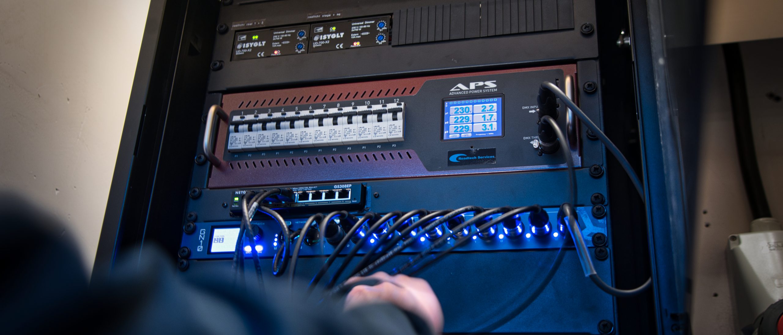 De nieuwe lichtinstallatie bestaat uit hoogwaardige armaturen van Chauvet, waaronder Ovation F-415VW’s, E-2 FC’s en Rêve E-3’s, aangevuld met COLORado’s en bijbehorende zoomlenzen en barndoors. Voor de besturing is gekozen voor een ChamSys MagicQ MQ50 met een GeNetix node en wandbediening, en de zaalverlichting wordt geregeld via ISYGLT dimmers. Deze combinatie maakt de installatie toekomstbestendig, gebruiksvriendelijk en van hoge technische kwaliteit.